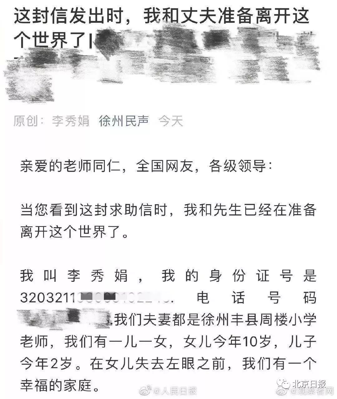 女教师写下“绝笔信”:我和丈夫准备离开这个世界了!当地政府回应了 读城 广州,早安! 不要害怕失败,不要害怕做决定。你还年轻,人生是你自己的啊,你可以成为任何一个你想成为的人。 天气进入无聊时间,这两天波澜不惊,以局地雷雨为主,大部分时段和区域没有影响。感觉又要过气了呢 ~ 新闻菜单 •女教师写下“绝笔信”:我和丈夫准备离开这个世界了!当地政府回应了 •刷手机就能坐火车!广东这32个车站试行电子客票 •2019年广州积分入户名额7000个 •8月8日,广州这些体育场馆将免费开放 •今起暂时取消大南路临时泊位 •高峰期堵得一塌糊涂!天河枫叶路南段拟拓宽 头啖汤.今日关注 关键词:回应电子客票 女教师写下“绝笔信”:我和丈夫准备离开这个世界了!当地政府回应了 昨天 一封“女教师绝笔信”在网上流传 举报人李秀娟在公众号上发表长文,称她女儿被同学无意伤害导致左眼失明,自己和丈夫因此事长期遭到当地有关部门的不公正对待,并透露其已有轻生心态。 举报人李秀娟称自己和丈夫都是徐州丰县周楼小学老师。长文中称,女儿被两位起冲突的同学无意中伤害,导致眼睛受伤后失明,后被鉴定成八级伤残,而一年多来,学校一直未妥善处理孩子的伤残赔偿问题,一直无法就赔偿问题达成一致。于是她和丈夫开始走法律程序。 求助信中贴出的全家福照片 医院诊断证明书 李秀娟称,她带女儿去北京治疗后回乡,到信访局反映了女儿眼睛被伤害一事,希望社会可以关注学生在校安全。但也因为这次信访记录,开始被学校领导、当地民警围堵、监视,拘留,甚至被撤职。 李秀娟在信件中表示,当地将李秀娟一家前往北京的行为定性为“上访”,并随后对其进行“不公正对待”,要求其承认“上访”。此后,李秀娟所属的教育局,也对其进行谈话,并下发处分文件。“我的丈夫被多次批评谈话,被撤职”。 这篇文章引起了网友的广泛关注和转发。 当地:已成立联合调查组 记者从江苏徐州丰县人民政府了解到:8月4日,丰县周楼小学教师李秀娟在自媒体《徐州民声》发布帖文,反映其遭受有关方面不公正待遇问题。丰县县委、县政府已成立联合调查组,对李秀娟同志反映的问题开展全面调查,并将根据调查事实,依法依规公正严肃处理。欢迎社会各界和媒体监督。 媒体:夫妇已被找到,没有自杀 丰县事件应急处理小组相关人士告诉记者,徐州市公安局和泉山分局出动了大批警力,根据女教师提供的微信定位,最终在徐州的云龙湖景区附近找到夫妻二人。目前,二人已被警方带走协助调查。 刷手机就能坐火车!广东这32个车站试行电子客票 坐火车,最怕排队取票, 一旦遇上高峰期, 分分钟被耽误, 简直生无可恋!