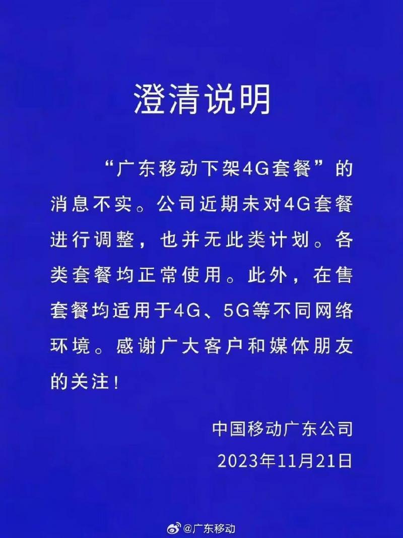 下架4G套餐?广东移动最新回应:消息不实,无此
