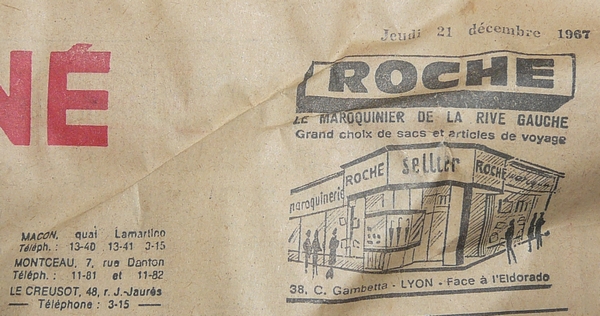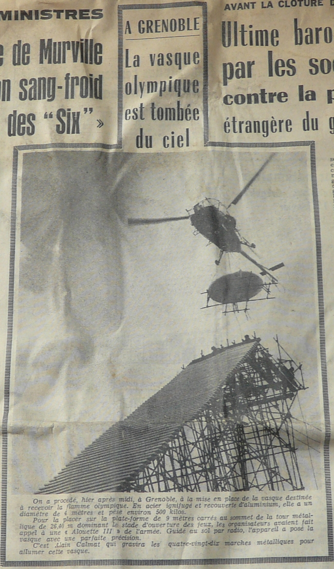 Au fond du carton dans lequel se trouvait le poste, il y avait un exemplaire du Dauphiné Libéré du jeudi 21 décembre 1967. Peut-être s'agit il de la date à laquelle le poste a été remisé, après 12 ans de bons et loyaux services... Il s'agissait d'une édition de Saone et Loire, et la une était consacrée, entre autre, à la mise en place de la vasque olympique à Grenoble, quelques semaines avant les jeux d'hiver de 1968.