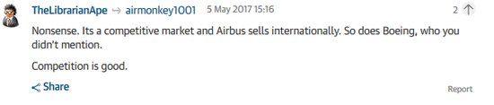 观察者网报道,中国第一架国产喷气式干线客机已经完成了首飞。中国官方称,C919机型的首飞将把中国带进新的航空时代。 这架双发动机的客机设计之初便意在与空客A320和波音737展开竞争。此次有象征意义的飞行在国家电视台上进行了现场直播。据悉这架飞机是位于上海的中国商用飞机公司设计制造的。 上世纪70年代,中国也曾试图制造这样一架商用飞机,但最后以失败告终。 值得指出的是,这架担负政治使命的C919飞机的一些关键分系统都来自国外,发动机采购自一家美法合资公司,起落架来自德国供应商,即使内饰也来自奥地利。一位航空业分析人士对彭博社记者表示,中国称这是一架国产飞机,但这种说法是有问题的。 虽然如此,这架飞机的成功首飞仍然在中国引发了自豪感和爱国热情。“很高兴、很自豪能看到它飞起来,起飞姿态非常平稳”,一位参与飞机研制的清华大学工程师对记者说。一些中国人把C919的成功首飞看成是“中国梦的最新成就”,中国国际电视台的主播读出了一位网友的留言:“在这个时代,中国可以制造世界上任何复杂的产品”。 中国一位航空专家认为,中国的干线客机项目将在由波音、空客主导的世界大型客机制造市场上撕开一个口子。“多年来我们一直在试图进入这一市场,C919可以与波音737和空客A320在技术上一较高下,而且某种程度上比空客A320更先进一些,我看好C919的市场前景”,这位中国航空专家说。 航空业者及专业作家德雷克·莱文(Derek Levine)在他的新书《龙的起飞》(The Dragon Takes Flight)中对中国航空制造业的发展有详细描述。他认为中国政府的飞机制造项目意在向自己的国民宣传:这个的国家可以制造世界上技术最复杂的产品。“中国共产党认为,大型喷气式干线客机项目的成功将有助于中国人摆脱西方给他们造成的百年屈辱,弥合民族情感创伤”,莱文在书中写道,“中国政府还有商业考虑,他们认为中国国内航空市场如此之大,不应被外国飞机制造商分食”。 波音公司去年曾预测,中国未来20年里将花费1万亿美元购买6800架新客机,其中大部分都是单通道客机,也就是C919这个机型。另外,还有报告指出,中国将于2024年取代美国,成为全球最大的航空市场。 在首飞之前,中国商飞公司表示,他们已经收到570架C919的订单。 航空专业作家莱文认为,中国国有航空公司会首先购买C919,这意味着“空客和波音将在中国国内市场上受到不小的损失”。 UnevenSurface:干得不错。还需要几年C919才能正式交付,甚至需要更长时间才能真正与空客A320NEO展开竞争,不过能有第三家飞机制造商加入竞争终归是好事情。当中国人的飞机能与波音787和空客A350竞争的时候,局面就更有趣了。 mhenri回复UnevenSurface:实际上一共有四家公司参与竞争,第四家是俄罗斯Irkut公司的MC-21飞机。也许有点天真,我希望人们能根据安全性、价格和性能来评价一架飞机,而不是它的国籍。 Ian Guy回复UnevenSurface:你可能漏下了巴西航空,他们也在研发中型窄体喷气客机,另外还有庞巴迪,他们也有这个能力。现在的问题是大的航空公司希望整个机队都能获得某型飞机的驾驶许可证,所以机队里全部是波音737或全部是空客A320的航空公司很难采购第三家的飞机。 airmonkey1001:中国人制造了他们自己的飞机,再见了,空客。 TheLibrarianApe回复airmonkey1001:胡说。这是一个竞争市场,空客在全世界销售自己的飞机,你没提到的波音也是如此。竞争是好事情。 (责任编辑:admin) |