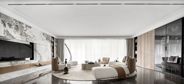 一贯坚持不囿于潮流的AVAD范可萨设计,将万江文脉与当代艺术语言的融合作为空间软装设计的主线,在人文底蕴与现代美学的凝聚中,从纯粹的视觉表象深入至人们内心的情感共鸣,抛除繁杂的空间修饰,以纯粹立体的结构顺沿光影的韵律,延展出涵容自然与艺术的场域美学,营造一种源于艺术、融于自然的当代生活意境。