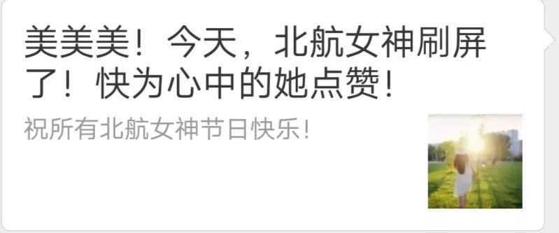 在北航 也有这样一个神奇的群聊 小萱加入了这个群聊 让我们一起回顾 3月,北航值得夸一夸的事 (点击图片或链接可以查看新闻详情哦~) 3月1日 航小萱 欢迎各位同仁加入北航夸夸群!我是主持夸——航小萱。这个月,让我们一起享受有爱的氛围,传递北航正能量吧~ 666小萱这波操作可以说非常用心了,夸! 哇,小萱这个想法太棒了,期待第一条教科书式夸奖2333 终于来了!一段简单的开场白,背后是学校各部门、院系间通力协作、用心服务的不懈努力,北航人“低调奢华有内涵”,必须夸! 航小萱 三月,聚焦2019年学校中心工作,各部门推出工作要点系列解读,点击图片,一起学习! “宁打一口井,不挖十个坑”,学校制定2019年度工作要点,上下协同联动,广泛凝聚共识,夸! 贯彻立德树人根本任务,北航学院大类培养模式稳步推进,打造一流“金课”,夸! 招就处今年进一步实施“本科招生质量提升计划”,优化就业指导服务。引进来走出去一路陪伴,夸! 教务处优化专业课程体系,适应全面发展需要,人才培养体系改革永远在路上,夸! 紧密围绕建设扎根中国大地的世界一流大学目标,国交处努力提升学校国际化质量,夸! 3月3日 全国政协十三届二次会议今日召开,全国人大十三届二次会议也将在后天开幕,今年共有5名北航人参加了“两会”!他们分别是:校长徐惠彬院士、副校长陶智教授、航空学院傅惠民教授、材料学院张涛教授、宇航学院徐世杰教授,为他们点赞! 航小萱 北航“两会”代表认真履职,建言献策,发出北航好声音,积极贡献北航智慧和力量!值得点赞�� 航小萱 今天下午,第十八期新任县委宣传部部长培训班暨中宣部2019年入部教育培训班赴我校开展现场教学活动。 空天报国,敢为人先,北航精神值得学习体验,求夸! 北航宣传思想文化建设紧扣“空天报国”理想信念,唱响主旋律,传播正能量,夸! 老、中、青三代北航人投身国家战略需求、瞄准学术前沿,走独立自主的科技创新之路,夸! 3月6日 2019年度学生工作会正在进行!贴近学生、服务到位~ 优秀的学生是北航的一笔宝贵财富,这个会开得很必要!夸! 做好学生工作落实立德树人根本任务,这个会开得很及时!夸! 3月7日 航小萱 这群小学生不得了,最近又拿了全国冠军,求夸~ 体育锻炼从孩子抓起,北航实验学校小学部(北航附小)排球队勇闯天涯,夸! ������原来我早已“输在起跑线上”...小学开始拿冠军,长江后浪推前浪�� 少年强则中国强,北航实验学校小学部(北航附小)排球队斩获三项全国冠军,“女排精神”薪火相传,夸! 3月8日 航小萱 今天是妇女节,祝所有北航女神节日快乐!夸一夸你心中的她吧~ “女教职工关爱月”系列活动正式启动啦!妇女节只有一天,北航要庆祝一个月,夸! 航小萱 疯狂打call!、等多家媒体报道,非常精彩! 本科招生新闻大集合��话不多说,戳图片了解北航本科招生工作最新进展! 北航生源质量一年更比一年好,现在的孩子越来越有眼光了! 喜迎新中国成立70周年——“寻航•逐梦”专场演出精彩上演!一系列经典舞蹈作品,展现新中国辉煌奋斗历程,好看~ 小萱看完演出热泪盈眶!新时代与航小青一起奋斗������夸! 航小萱 喜迎新中国成立70周年——“航拍中国”摄影图片展在北航艺术馆开幕!大美中国,北航见证!求夸! 大好河山,尽收眼底,航拍中国,精彩呈现,与北航合作愉快~夸! 马上看了展览,十分震撼,祖国大好河山尽收眼底,经济发展日新月异,夸! 3月13日 “科学大咖面对面”——潘建伟院士做客北航大讲堂讲述新量子革命,今天你听大师讲座了吗? 量子通信首席科学家潘建伟院士在北航开展科普讲座,让同学们了解前沿科学,为广大学子树立崇高理想,优秀! 航小萱 18日上午,习近平总书记在京主持召开学校思想政治理论课教师座谈会并发表重要讲话。点击图片,第一时间学习总书记重要讲话精神! 讲好思政课,关键在教师。北航始终重视思政教师队伍建设,努力打造政治强、情怀深、思维新、视野广、自律严、人格正的优秀教师队伍,夸! 航小萱 18日下午,我校召开会议,学习传达2019年全国“两会”精神。2019,我们都是追梦人������ 近一个月来,北航校园内关注“两会”、了解“两会”、学习“两会”的热情不减。期待“两会”有更多北航声音! 3月19日 航小萱 这两天,北航师生习近平总书记在学校思想政治理论课教师座谈会上的重要讲话精神,让我们来夸一夸北航的思政老师吧~ 北航的思政老师理论扎实,与时俱进,热情满满,给他们点赞! |